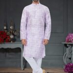 Pair this Light Lavender Printed Silk Kurta Set For Men with matching accessories for a complete, graceful look. Designed to suit all body types, the Light Lavender Printed Silk Kurta Set For Men blends tradition with modern aesthetics. Experience timeless elegance with our Light Lavender Printed Silk Kurta Set For Men, crafted to add a royal touch to your wardrobe. Perfect for weddings, parties, and festive occasions, this piece enhances your cultural charm. This Light Lavender Printed Silk Kurta Set For Men is made from premium fabrics, ensuring comfort while keeping you stylish.