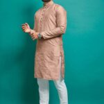 Pair this Light Peach Embroidered Silk Kurta Set For Men with matching accessories for a complete, graceful look. Perfect for weddings, parties, and festive occasions, this piece enhances your cultural charm. This Light Peach Embroidered Silk Kurta Set For Men is made from premium fabrics, ensuring comfort while keeping you stylish. Experience timeless elegance with our Light Peach Embroidered Silk Kurta Set For Men, crafted to add a royal touch to your wardrobe. Designed to suit all body types, the Light Peach Embroidered Silk Kurta Set For Men blends tradition with modern aesthetics.