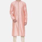 Pair this Light Pink Embroidered Silk Kurta Set For Men with matching accessories for a complete, graceful look. Experience timeless elegance with our Light Pink Embroidered Silk Kurta Set For Men, crafted to add a royal touch to your wardrobe. Perfect for weddings, parties, and festive occasions, this piece enhances your cultural charm. This Light Pink Embroidered Silk Kurta Set For Men is made from premium fabrics, ensuring comfort while keeping you stylish. Designed to suit all body types, the Light Pink Embroidered Silk Kurta Set For Men blends tradition with modern aesthetics.