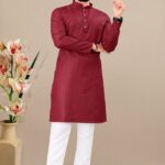 Perfect for weddings, parties, and festive occasions, this piece enhances your cultural charm. Designed to suit all body types, the Maroon Embroidered Cotton Blend Kurta Set For Men blends tradition with modern aesthetics. Pair this Maroon Embroidered Cotton Blend Kurta Set For Men with matching accessories for a complete, graceful look. This Maroon Embroidered Cotton Blend Kurta Set For Men is made from premium fabrics, ensuring comfort while keeping you stylish. Experience timeless elegance with our Maroon Embroidered Cotton Blend Kurta Set For Men, crafted to add a royal touch to your wardrobe.