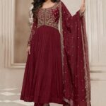 Perfect for weddings, parties, and festive occasions, this piece enhances your cultural charm. Designed to suit all body types, the Maroon Thread Sequin Embroidered Chinon Anarkali Set blends tradition with modern aesthetics. Experience timeless elegance with our Maroon Thread Sequin Embroidered Chinon Anarkali Set, crafted to add a royal touch to your wardrobe. Pair this Maroon Thread Sequin Embroidered Chinon Anarkali Set with matching accessories for a complete, graceful look. This Maroon Thread Sequin Embroidered Chinon Anarkali Set is made from premium fabrics, ensuring comfort while keeping you stylish.