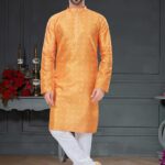 Pair this Mustard And Orange Printed Silk Kurta Set For Men with matching accessories for a complete, graceful look. Perfect for weddings, parties, and festive occasions, this piece enhances your cultural charm. This Mustard And Orange Printed Silk Kurta Set For Men is made from premium fabrics, ensuring comfort while keeping you stylish. Experience timeless elegance with our Mustard And Orange Printed Silk Kurta Set For Men, crafted to add a royal touch to your wardrobe. Designed to suit all body types, the Mustard And Orange Printed Silk Kurta Set For Men blends tradition with modern aesthetics.