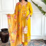 Perfect for weddings, parties, and festive occasions, this piece enhances your cultural charm. Designed to suit all body types, the Mustard Embroidered Chanderi Silk Kurta Set blends tradition with modern aesthetics. This Mustard Embroidered Chanderi Silk Kurta Set is made from premium fabrics, ensuring comfort while keeping you stylish. Pair this Mustard Embroidered Chanderi Silk Kurta Set with matching accessories for a complete, graceful look. Experience timeless elegance with our Mustard Embroidered Chanderi Silk Kurta Set, crafted to add a royal touch to your wardrobe.