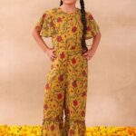 This Mustard Yellow Floral Print Jumpsuit With Dori Belt (Set of 2) is made from premium fabrics, ensuring comfort while keeping you stylish. Perfect for weddings, parties, and festive occasions, this piece enhances your cultural charm. Designed to suit all body types, the Mustard Yellow Floral Print Jumpsuit With Dori Belt (Set of 2) blends tradition with modern aesthetics. Pair this Mustard Yellow Floral Print Jumpsuit With Dori Belt (Set of 2) with matching accessories for a complete, graceful look. Experience timeless elegance with our Mustard Yellow Floral Print Jumpsuit With Dori Belt (Set of 2), crafted to add a royal touch to your wardrobe.