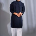 Designed to suit all body types, the Navy Blue Bandhgala Kurta Set For Men blends tradition with modern aesthetics. Pair this Navy Blue Bandhgala Kurta Set For Men with matching accessories for a complete, graceful look. This Navy Blue Bandhgala Kurta Set For Men is made from premium fabrics, ensuring comfort while keeping you stylish. Perfect for weddings, parties, and festive occasions, this piece enhances your cultural charm. Experience timeless elegance with our Navy Blue Bandhgala Kurta Set For Men, crafted to add a royal touch to your wardrobe.