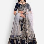 Navy Blue Zari Embroidered Velvet Lehenga Set