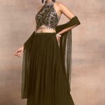 Designed to suit all body types, the Olive Lehenga Set With Floral Hand Embroidered Halter Blouse And Dupatta blends tradition with modern aesthetics. This Olive Lehenga Set With Floral Hand Embroidered Halter Blouse And Dupatta is made from premium fabrics, ensuring comfort while keeping you stylish. Pair this Olive Lehenga Set With Floral Hand Embroidered Halter Blouse And Dupatta with matching accessories for a complete, graceful look. Perfect for weddings, parties, and festive occasions, this piece enhances your cultural charm. Experience timeless elegance with our Olive Lehenga Set With Floral Hand Embroidered Halter Blouse And Dupatta, crafted to add a royal touch to your wardrobe.