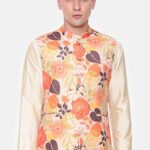 Pair this Orange And Beige Floral Print Muslin Nehru Jacket For Men with matching accessories for a complete, graceful look. This Orange And Beige Floral Print Muslin Nehru Jacket For Men is made from premium fabrics, ensuring comfort while keeping you stylish. Perfect for weddings, parties, and festive occasions, this piece enhances your cultural charm. Experience timeless elegance with our Orange And Beige Floral Print Muslin Nehru Jacket For Men, crafted to add a royal touch to your wardrobe. Designed to suit all body types, the Orange And Beige Floral Print Muslin Nehru Jacket For Men blends tradition with modern aesthetics.