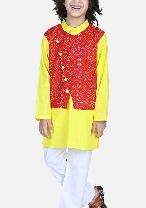 Perfect for weddings, parties, and festive occasions, this piece enhances your cultural charm. Experience timeless elegance with our Orange Bandhani Print Sharara With Kurta (Set of 2), crafted to add a royal touch to your wardrobe. This Orange Bandhani Print Sharara With Kurta (Set of 2) is made from premium fabrics, ensuring comfort while keeping you stylish. Pair this Orange Bandhani Print Sharara With Kurta (Set of 2) with matching accessories for a complete, graceful look. Designed to suit all body types, the Orange Bandhani Print Sharara With Kurta (Set of 2) blends tradition with modern aesthetics.