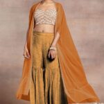 Perfect for weddings, parties, and festive occasions, this piece enhances your cultural charm. Pair this Orange Sharara Set With Pearl Sequin Hand Embroidered Blouse And Mesh Jacket with matching accessories for a complete, graceful look. This Orange Sharara Set With Pearl Sequin Hand Embroidered Blouse And Mesh Jacket is made from premium fabrics, ensuring comfort while keeping you stylish. Designed to suit all body types, the Orange Sharara Set With Pearl Sequin Hand Embroidered Blouse And Mesh Jacket blends tradition with modern aesthetics. Experience timeless elegance with our Orange Sharara Set With Pearl Sequin Hand Embroidered Blouse And Mesh Jacket, crafted to add a royal touch to your wardrobe.