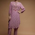 Pale Pink Rhinestones Work Bemberg Crepe Co-ord Set