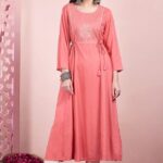 This Peach Zari Embroidered Rayon Dress is made from premium fabrics, ensuring comfort while keeping you stylish. Pair this Peach Zari Embroidered Rayon Dress with matching accessories for a complete, graceful look. Perfect for weddings, parties, and festive occasions, this piece enhances your cultural charm. Designed to suit all body types, the Peach Zari Embroidered Rayon Dress blends tradition with modern aesthetics. Experience timeless elegance with our Peach Zari Embroidered Rayon Dress, crafted to add a royal touch to your wardrobe.
