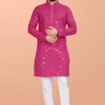 Designed to suit all body types, the Pink Embroidered Cotton Blend Kurta Set For Men blends tradition with modern aesthetics. Experience timeless elegance with our Pink Embroidered Cotton Blend Kurta Set For Men, crafted to add a royal touch to your wardrobe. Perfect for weddings, parties, and festive occasions, this piece enhances your cultural charm. Pair this Pink Embroidered Cotton Blend Kurta Set For Men with matching accessories for a complete, graceful look. This Pink Embroidered Cotton Blend Kurta Set For Men is made from premium fabrics, ensuring comfort while keeping you stylish.