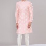 Perfect for weddings, parties, and festive occasions, this piece enhances your cultural charm. Pair this Pink Embroidered Terry Silk Achkan Set For Men with matching accessories for a complete, graceful look. This Pink Embroidered Terry Silk Achkan Set For Men is made from premium fabrics, ensuring comfort while keeping you stylish. Experience timeless elegance with our Pink Embroidered Terry Silk Achkan Set For Men, crafted to add a royal touch to your wardrobe. Designed to suit all body types, the Pink Embroidered Terry Silk Achkan Set For Men blends tradition with modern aesthetics.