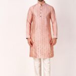This Pink Mirror Work Art Silk Kurta Set For Men is made from premium fabrics, ensuring comfort while keeping you stylish. Perfect for weddings, parties, and festive occasions, this piece enhances your cultural charm. Experience timeless elegance with our Pink Mirror Work Art Silk Kurta Set For Men, crafted to add a royal touch to your wardrobe. Pair this Pink Mirror Work Art Silk Kurta Set For Men with matching accessories for a complete, graceful look. Designed to suit all body types, the Pink Mirror Work Art Silk Kurta Set For Men blends tradition with modern aesthetics.