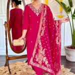 Pair this Rani Pink Thread Embroidered Viscose Kurta Set with matching accessories for a complete, graceful look. Experience timeless elegance with our Rani Pink Thread Embroidered Viscose Kurta Set, crafted to add a royal touch to your wardrobe. Perfect for weddings, parties, and festive occasions, this piece enhances your cultural charm. Designed to suit all body types, the Rani Pink Thread Embroidered Viscose Kurta Set blends tradition with modern aesthetics. This Rani Pink Thread Embroidered Viscose Kurta Set is made from premium fabrics, ensuring comfort while keeping you stylish.