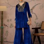 Perfect for weddings, parties, and festive occasions, this piece enhances your cultural charm. Experience timeless elegance with our Royal Blue Embroidered Velvet Palazzo Set, crafted to add a royal touch to your wardrobe. This Royal Blue Embroidered Velvet Palazzo Set is made from premium fabrics, ensuring comfort while keeping you stylish. Designed to suit all body types, the Royal Blue Embroidered Velvet Palazzo Set blends tradition with modern aesthetics. Pair this Royal Blue Embroidered Velvet Palazzo Set with matching accessories for a complete, graceful look.