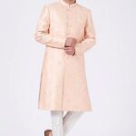 Pair this Salmon Pink Sequin Thread Embroidered Achkan Set For Men with matching accessories for a complete, graceful look. Experience timeless elegance with our Salmon Pink Sequin Thread Embroidered Achkan Set For Men, crafted to add a royal touch to your wardrobe. Designed to suit all body types, the Salmon Pink Sequin Thread Embroidered Achkan Set For Men blends tradition with modern aesthetics. Perfect for weddings, parties, and festive occasions, this piece enhances your cultural charm. This Salmon Pink Sequin Thread Embroidered Achkan Set For Men is made from premium fabrics, ensuring comfort while keeping you stylish.