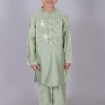Designed to suit all body types, the Sea Green Mirror Embroidered Kurta With Pajama (Set of 2) blends tradition with modern aesthetics. Pair this Sea Green Mirror Embroidered Kurta With Pajama (Set of 2) with matching accessories for a complete, graceful look. This Sea Green Mirror Embroidered Kurta With Pajama (Set of 2) is made from premium fabrics, ensuring comfort while keeping you stylish. Perfect for weddings, parties, and festive occasions, this piece enhances your cultural charm. Experience timeless elegance with our Sea Green Mirror Embroidered Kurta With Pajama (Set of 2), crafted to add a royal touch to your wardrobe.