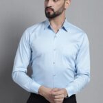 Sky Blue Cotton Blend Shirt For Men
