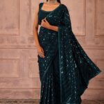 Perfect for weddings, parties, and festive occasions, this piece enhances your cultural charm. Experience timeless elegance with our Teal Blue Tonal Sequin Embroidered Saree Set With Stitched Blouse, crafted to add a royal touch to your wardrobe. This Teal Blue Tonal Sequin Embroidered Saree Set With Stitched Blouse is made from premium fabrics, ensuring comfort while keeping you stylish. Pair this Teal Blue Tonal Sequin Embroidered Saree Set With Stitched Blouse with matching accessories for a complete, graceful look. Designed to suit all body types, the Teal Blue Tonal Sequin Embroidered Saree Set With Stitched Blouse blends tradition with modern aesthetics.