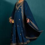 Teal Zari Sequin Embroidered Vichitra Kurta Set