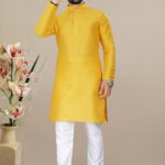 This Yellow Embroidered Jacquard Kurta Set For Men is made from premium fabrics, ensuring comfort while keeping you stylish. Perfect for weddings, parties, and festive occasions, this piece enhances your cultural charm. Pair this Yellow Embroidered Jacquard Kurta Set For Men with matching accessories for a complete, graceful look. Experience timeless elegance with our Yellow Embroidered Jacquard Kurta Set For Men, crafted to add a royal touch to your wardrobe. Designed to suit all body types, the Yellow Embroidered Jacquard Kurta Set For Men blends tradition with modern aesthetics.