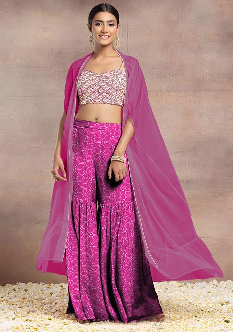 Designed to suit all body types, the Yellow Sharara Set With Pearl Sequin Hand Embroidered Blouse And Mesh Jacket blends tradition with modern aesthetics. Pair this Yellow Sharara Set With Pearl Sequin Hand Embroidered Blouse And Mesh Jacket with matching accessories for a complete, graceful look. This Yellow Sharara Set With Pearl Sequin Hand Embroidered Blouse And Mesh Jacket is made from premium fabrics, ensuring comfort while keeping you stylish. Experience timeless elegance with our Yellow Sharara Set With Pearl Sequin Hand Embroidered Blouse And Mesh Jacket, crafted to add a royal touch to your wardrobe. Perfect for weddings, parties, and festive occasions, this piece enhances your cultural charm.